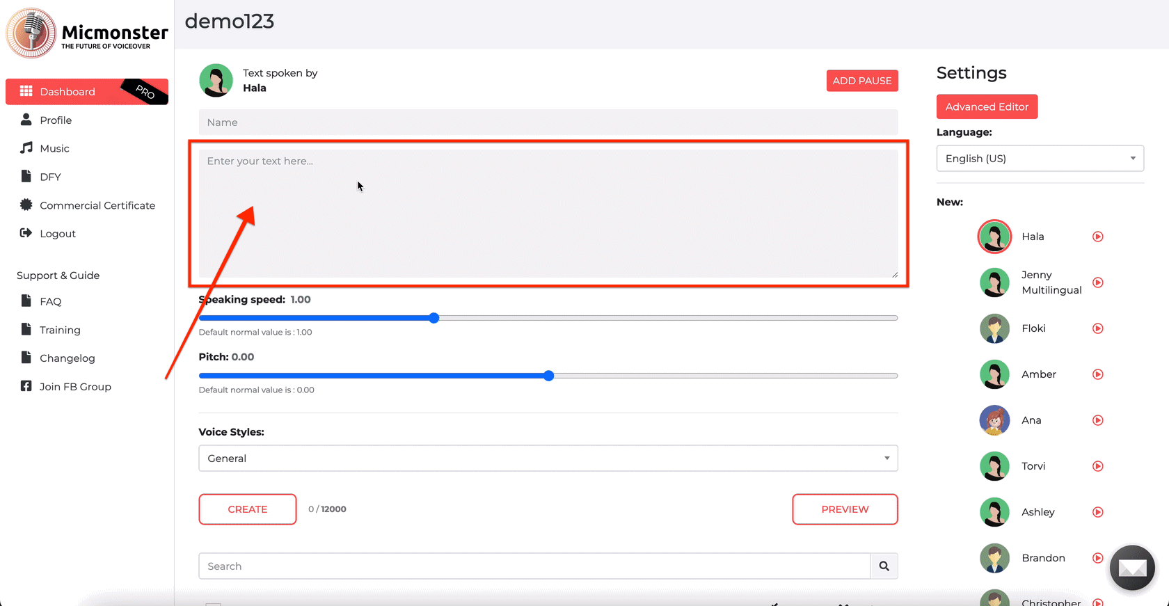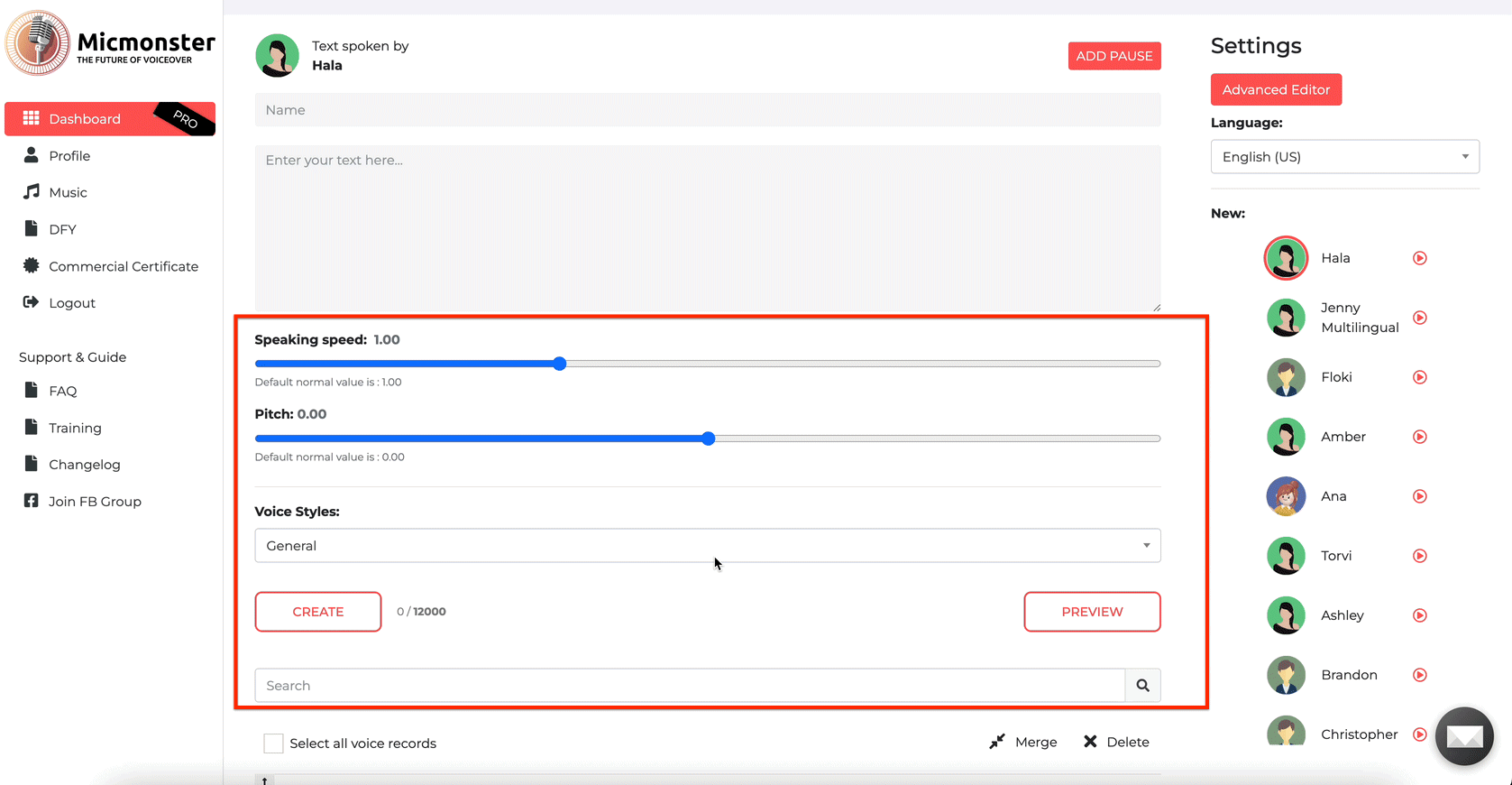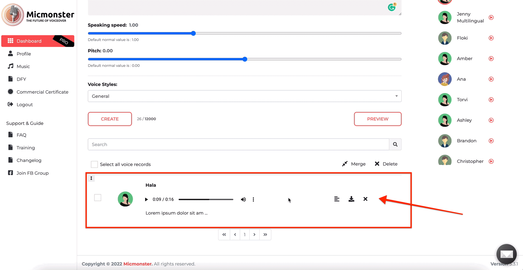 The last step is to hit the create button and download your voiceover file.